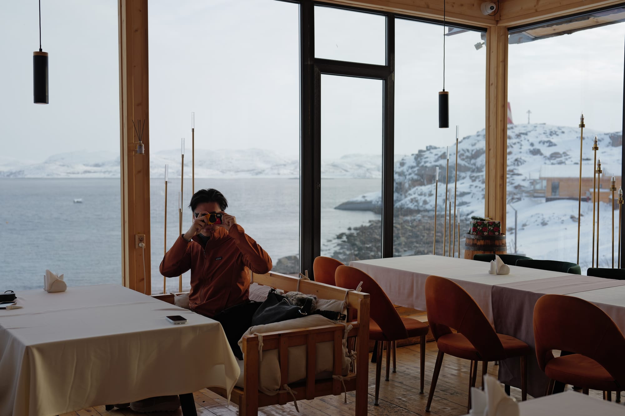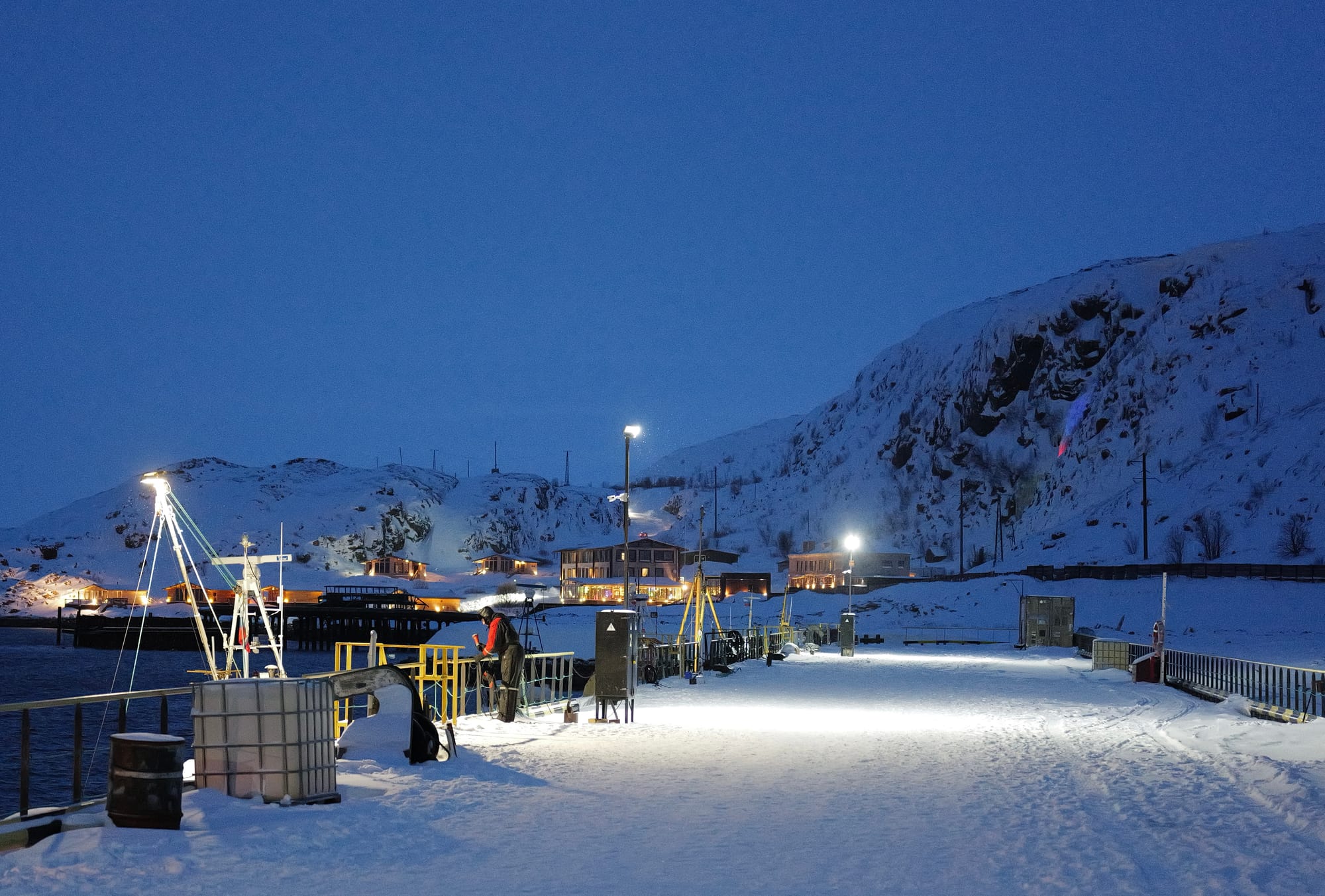 写了这么多,忘记了这次旅行的初心是为了去追寻极光,说回我们旅行的第一天,从摩尔曼斯克落地,住进了一个老式公房,也没啥特别的,就是特别贵。接机的师傅开着一辆小现代,因为行李放不下了,只得我们三个人坐在后排,副驾也堆满行李。一路上司机没有说一句话,只是看到我摇下窗拍照的时候,他放慢了车速,随后说了句photo?我以最快的速度拍完之后说了句i’m ok,一直到我们住所楼下,司机出来之后反复用翻译器询问我们是不是这里,有没有和房东沟通,再三确认反复确认之后才离开。虽然他全程板着脸但却很热心。还挺反差的。抵达时已经是晚上十点多,我们快速收拾了一下,穿上最厚的装备,前往200m开外的超市购买晚饭,其实又是泡面。这段城市道路真的是我这辈子走过最艰难的200m,估计走了有十多分钟。吃好泡面基本已经是十二点多,早早洗洗睡了。计划第二天的大早,前往捷里的北冰洋上追鲸鱼。